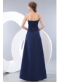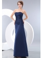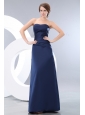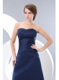 Cheap Navy Blue Strapless Ruch Bridesmaid Dress Column Floor-length Satin
