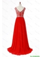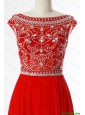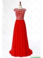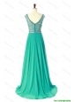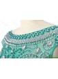 Cheap New Style Bateau Beading Brush Train Prom Dress in Turquoise