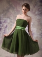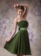Cheap Olive Green Cocktail Dress Empire Strapless Chiffon Sash Knee-length