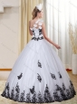 Home >  Quinceanera Dresses >  Perfect Quinceanera Dresses > Cheap One Shoulder White and Black Quinceanera Dress with Appliques for 2015