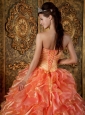 Cheap Orange Quinceanera Dress Strapless Beading and Ruffles Ball Gown