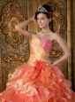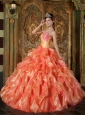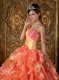 Home >  Quinceanera Dresses >  Popular Quinceanera Dresses > Cheap Orange Quinceanera Dress Strapless Beading and Ruffles Ball Gown