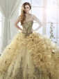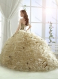 Silhouette: Ball Gown Neckline: Sweetheart Waist: Fitted Hemline/Train: Brush Train Sleeve Length: Sleeveless Embellishment: Beading and Ruffles Back Detail: Lace Up Fully Lined: Yes Built-In Bra: Yes Fabric: Organza Shown Color: Champagne(Color & Style representation may vary by monitor.) Occasion: Sweet 16, Quinceanera, Military Ball Season: Spring, Summer, Fall, Winter