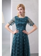 Cheap Peacock Green Column Scoop Mother Of The Bride Dress Floor-length Lace