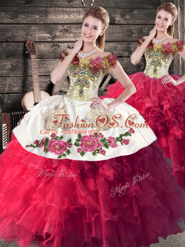 Home >  Quinceanera Dresses >  Detachable Quinceanera Skirts > Cheap Pink And White Sleeveless Embroidery and Ruffles Floor Length Sweet 16 Quinceanera Dress