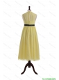 Cheap Pretty High Neck Tea Length Prom Dresses with Sashes