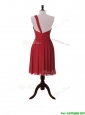 Cheap Pretty Ruching One Shoulder Short Prom Dresses in Red