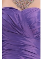 The purple prom dress is sure for you to own if you are searching for something purple. A fitted, strapless bodice made of ruched details accenting the sweetheart neckline. The full skirt with net material on the outlayer creates a beautiful shape to complete the dress. The back is zipper up back.