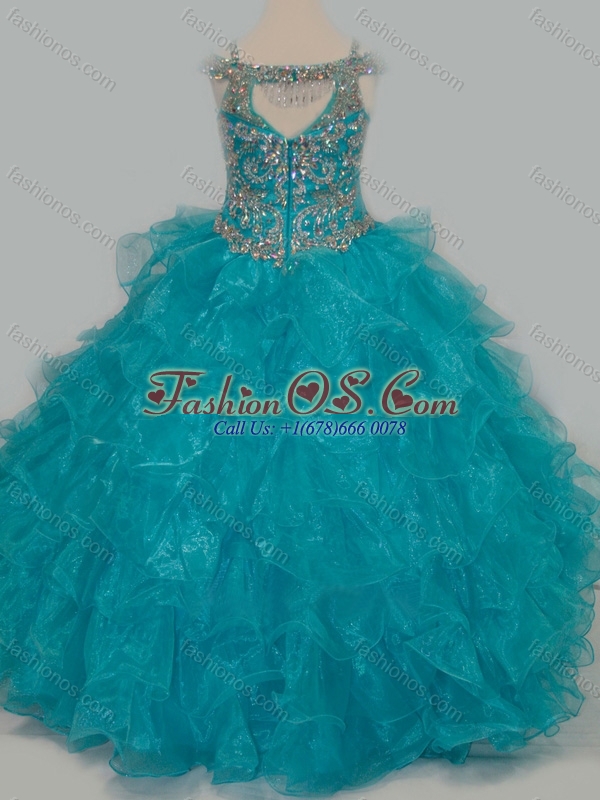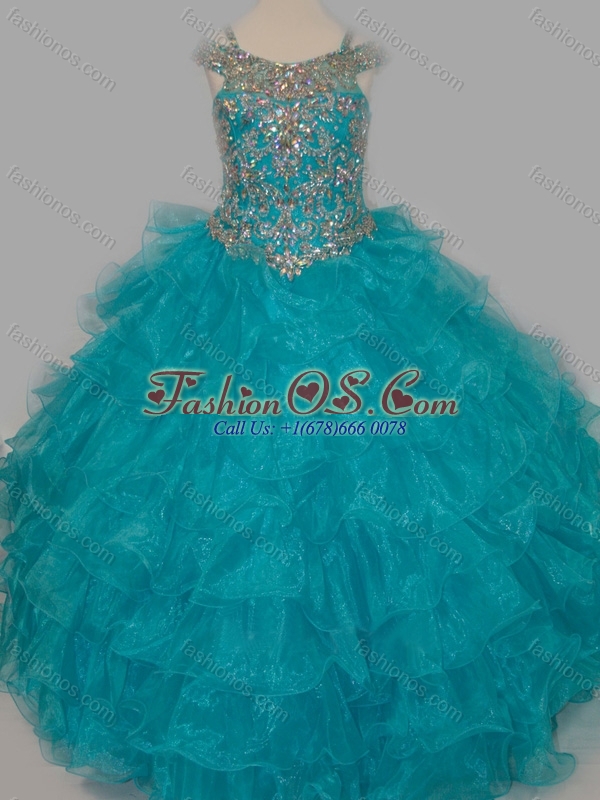 Home >  Special Occasion Dresses >  New Style Little Girl Pageant Dresses > Cheap Really Puffy V-neck Teal Little Girl Pageant Dress with Rhinestones and Straps