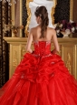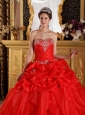 Cheap Red Quinceanera Dress Sweetheart Organza Appliques with Beading  Ball Gown