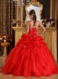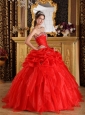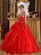 Home >  Quinceanera Dresses >  Popular Quinceanera Dresses > Cheap Red Quinceanera Dress Sweetheart Organza Appliques with Beading Ball Gown