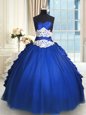 Cheap Royal Blue Lace Up Ball Gown Prom Dress Beading and Lace and Appliques and Ruffles and Pick Ups Sleeveless Floor Length