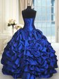 Home >  Quinceanera Dresses >  New Arrival Quinceanera Dresses > Cheap Royal Blue Lace Up Ball Gown Prom Dress Beading and Lace and Appliques and Ruffles and Pick Ups Sleeveless Floor Length