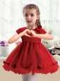 Cheap Scoop Mini Length Short Sleeves Little Girl Dress with Bowknot