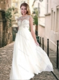 Cheap See Through Applique with Beading Bridesmaid Dress in Chiffon