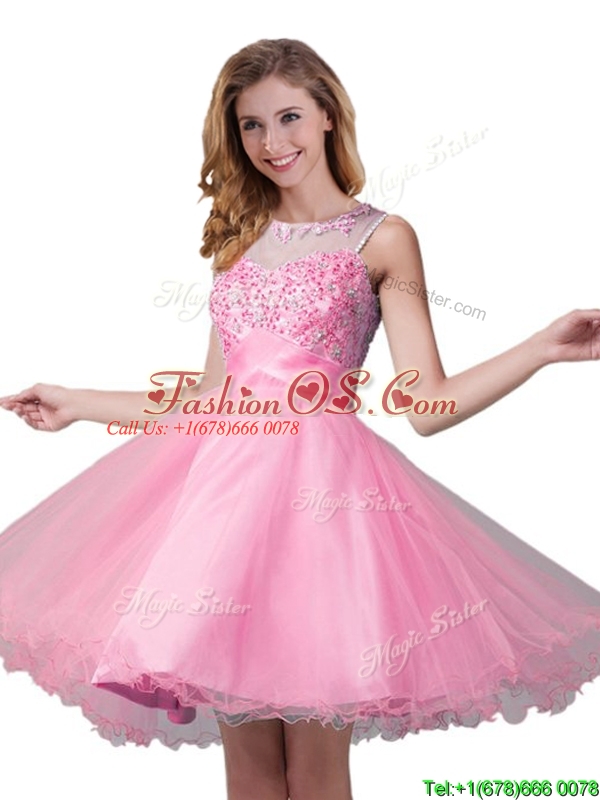 Cheap See Through Bateau A Line Dama Dress with Beading