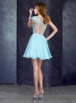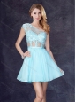 Cheap See Through One Shoulder Applique Prom Dress in Aqua Blue
