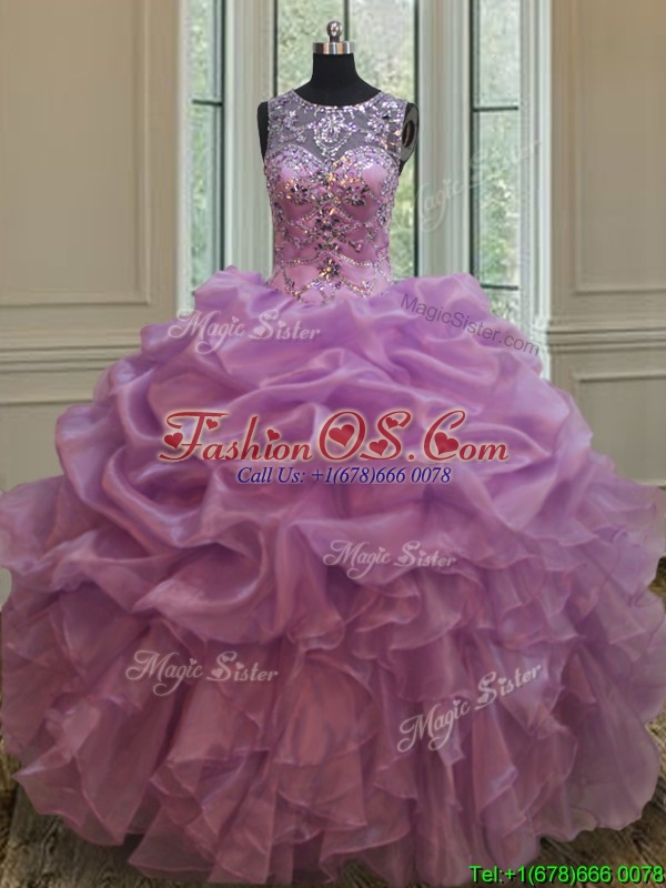 Home >  Quinceanera Dresses >  Cheap Quinceanera Dresses > Cheap See Through Scoop Beaded and Bubble Quinceanera Dress with Ruffles
