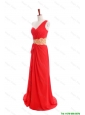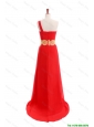 Cheap Sexy Appliques and Ruffles One Shoulder Prom Dresses with Sweep Train