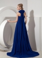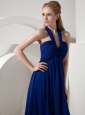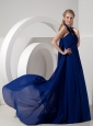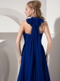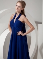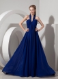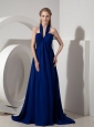 Cheap Sexy Navy Blue Halter top Watteau Train Prom Dress