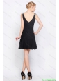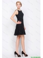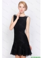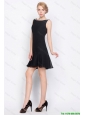 Cheap Short Bateau Beaded Chiffon Prom Dresses in Black