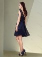 Cheap Short Cap Sleeves Bateau Lace Mother of The Bride Dress in Navy Blue