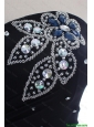 Cheap Simple Empire Strapless Beaded Prom Dresses in Black