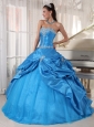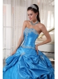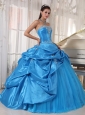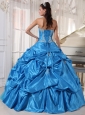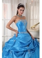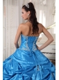 Cheap Sky Blue Quinceanera Dress Strapless Taffeta and Tulle Appliques Ball Gown