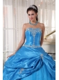 Home >  Quinceanera Dresses >  Cute Quinceanera Dresses > Cheap Sky Blue Quinceanera Dress Strapless Taffeta and Tulle Appliques Ball Gown