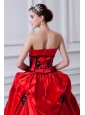 Cheap Strapless Appliques Pick-ups Black and Red Quinceanera Dress with Brush Train