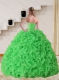 Cheap Strapless Spring Green Quinceanera Dress with Beading and Ruffles