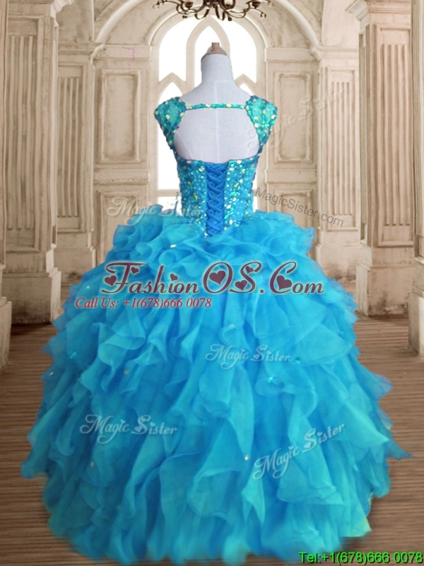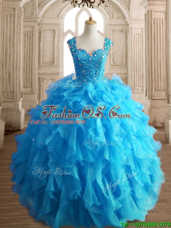 Cheap Straps Beading and Ruffles Quinceanera Dress in Aqua Blue