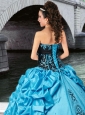 Home >  Quinceanera Dresses >  New Arrival Quinceanera Dresses > Cheap Sweetheart Embroidery Quinceanera Dress in Blue and Black with Beading and Pick Ups
