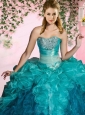 Cheap Sweetheart Turquoise Quinceanera Dresses with Appliques and Ruffles