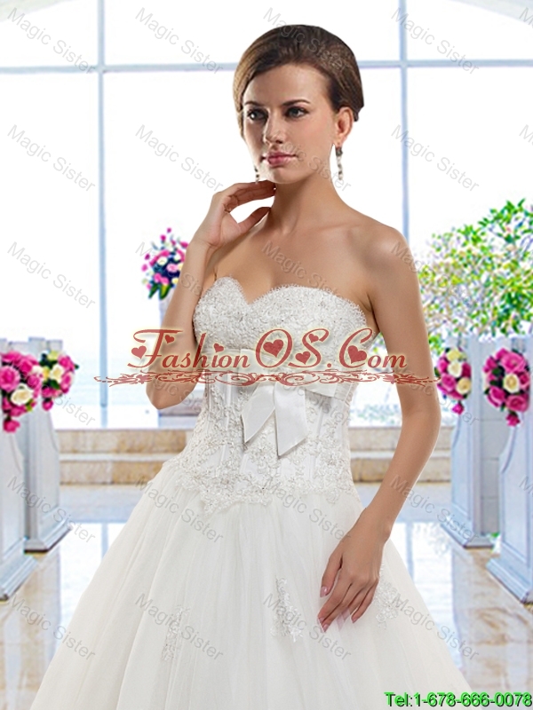 Cheap Sweetheart Wedding Dresses with Appliques and Bowknot