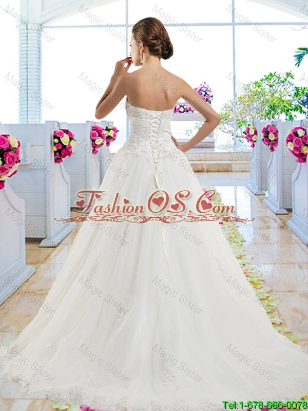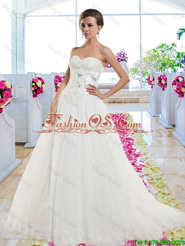 Home >  Wedding Dresses >  Romantic Wedding Dresses > Cheap Sweetheart Wedding Dresses with Appliques and Bowknot