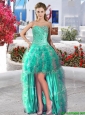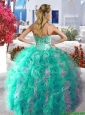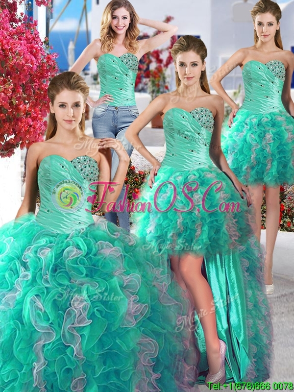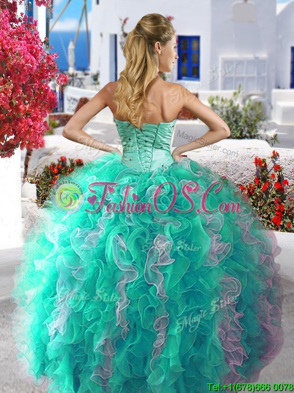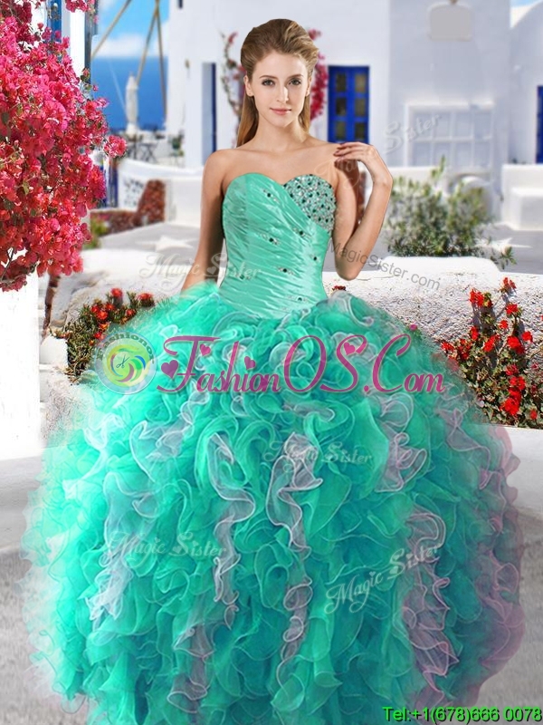 Cheap Turquoise and White Detachable Quinceanera Dresses with Beading and Ruffles
