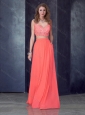 Cheap Two Piece Straps Applique Watermelon Red Bridesmaid Dress in Chiffon