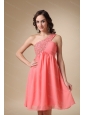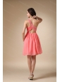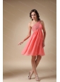 Realize your sweet dream with this stunning short dress! This wonderful watermelon red one shoulder dress is featured with glittering beading accents on the right bust, toghther with the ruched bodice make the dress dazzlingly shaped. Half open back completes the look. The flowy chiffon continue the already chic dress more romantic. You are surely to be the hotest one in the party!