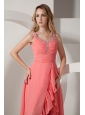 Home >  Prom Dresses >  Best Prom Dresses > Cheap Watermelon Red V-neck Chiffon Split Prom Dress