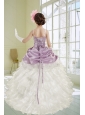 Cheap White and Lavender Little Girl Dress with Appliques and Ruffled Layers