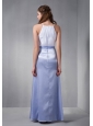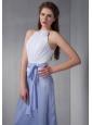 Cheap White and Lilac Scoop Bridesmaid Dress wth Chiffon Belt