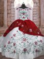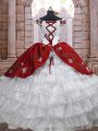 Cheap White And Red Sleeveless Floor Length Embroidery and Ruffled Layers Lace Up 15 Quinceanera Dress