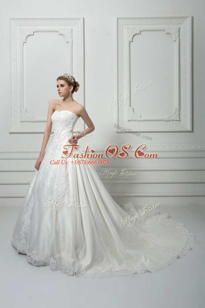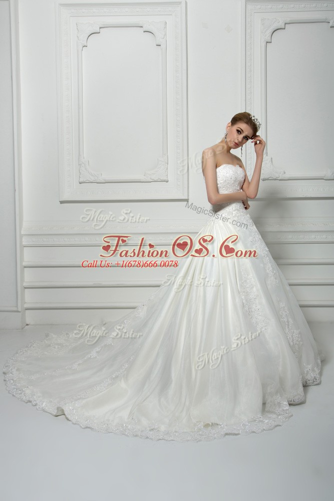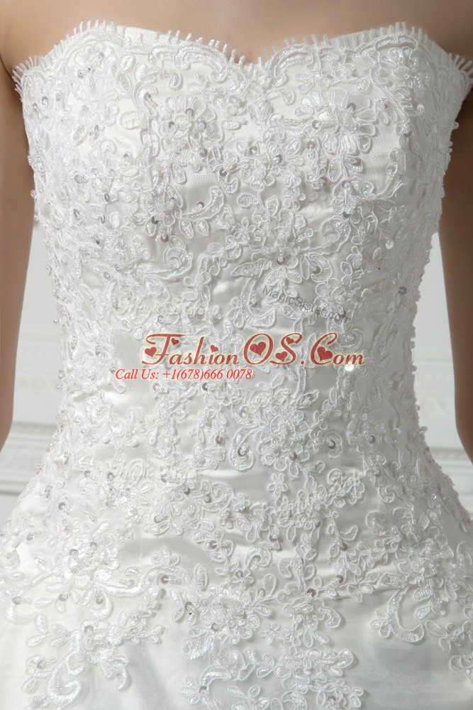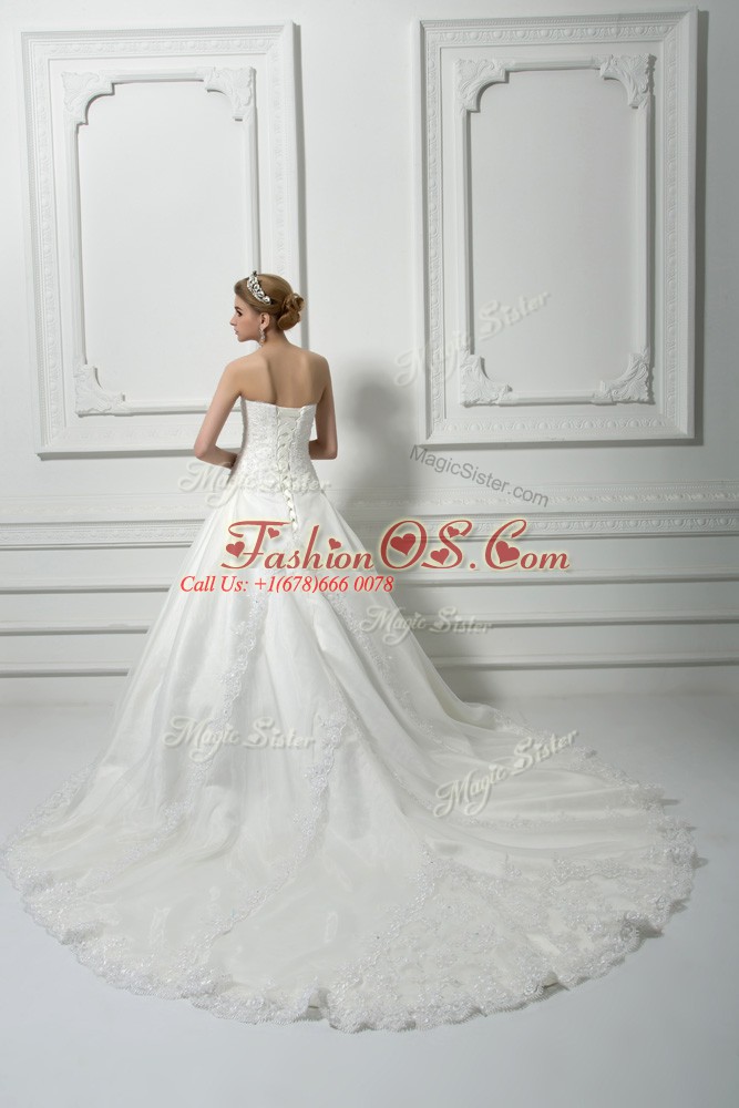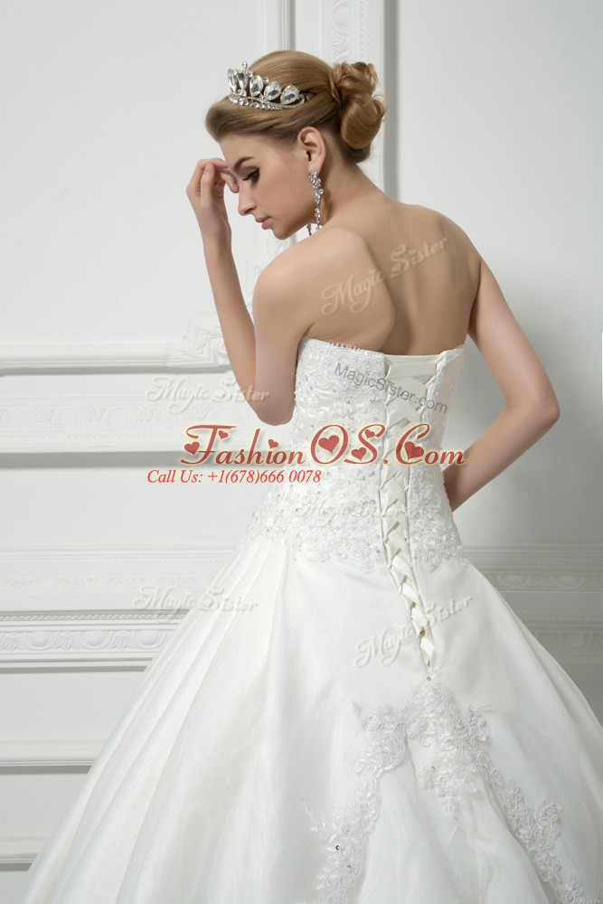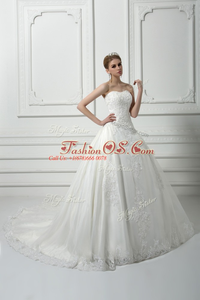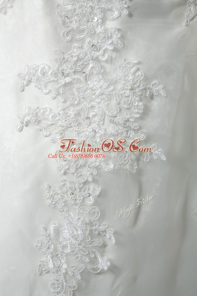 Cheap White Ball Gowns Beading and Lace Wedding Gowns Lace Up Tulle Sleeveless