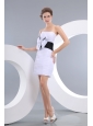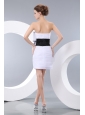 Cheap White Column Strapless Bowknot Bridesmaid Dress Mini-length Taffeta