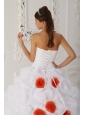 Home >  Quinceanera Dresses >  Fashionable Quinceanera Dresses > Cheap White Quinceanera Dress Strapless Court Train Organza Beading and Hand Flower Ball Gown