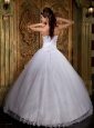 Cheap White Quinceanera Dress Strapless Satin and Tulle Lace Ball Gown