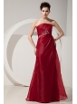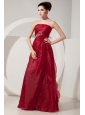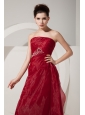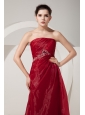 Cheap Wine Red Prom Dress Empire Strapless Beading Floor-length Organza