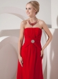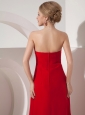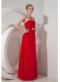 They'll roll out the red carpet on your 2012 prom night to allow for a glamorous entrance. This long red prom dress features a straight neckline, sporadic beads dotted on the bust part, ruched fabric forms a flattering crisscross at the waistline gathered by a rounded bead design. A–line floor length train gracefully falling with your slim figure makes you feel you are the fairy flying in the flowers.