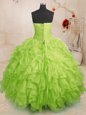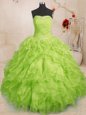 Cheap Yellow Green Ball Gowns Beading and Ruffles and Ruching 15th Birthday Dress Lace Up Organza Sleeveless Floor Length